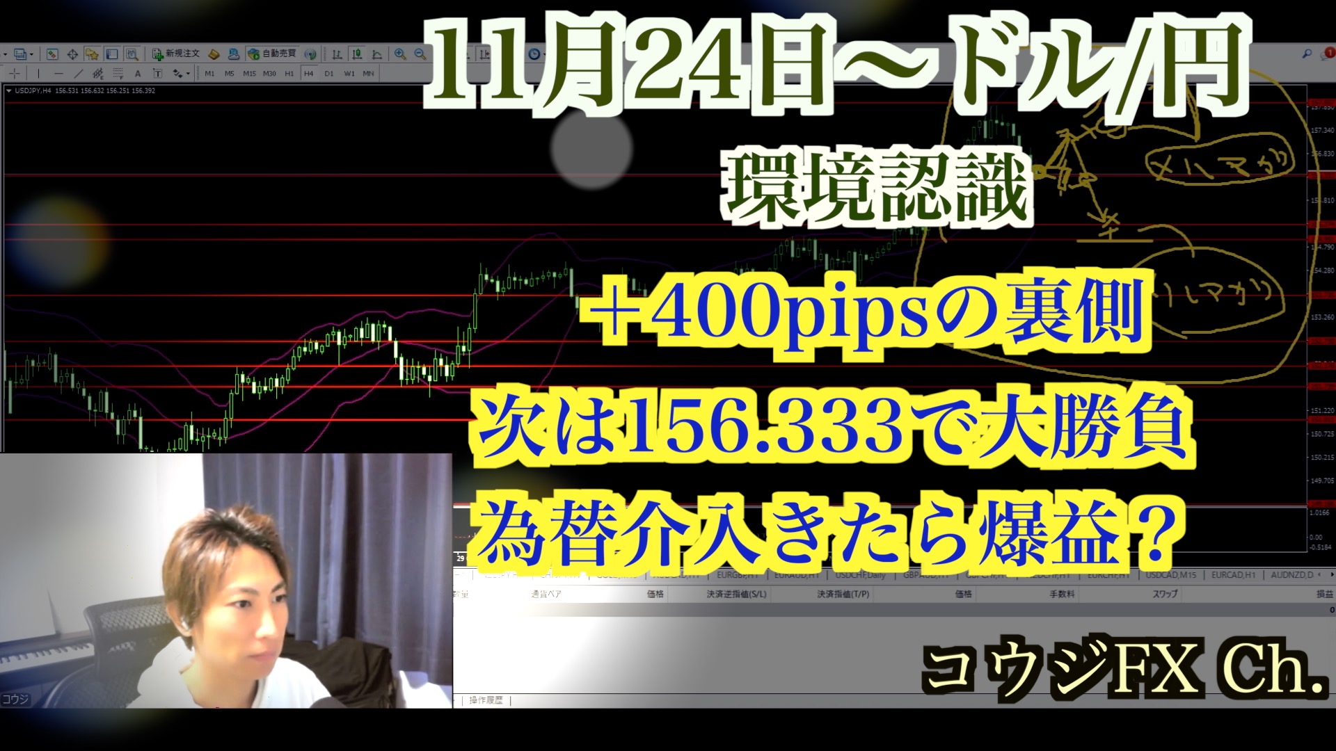環境認識動画で話していた 156.333のラインを下抜け てスタートしました。