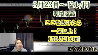 動画有り 159.721を抜けるか|今週は“とりやすい相場”になるかも【ドル円 環境認識 3/23〜】 こんにちは、木村浩二です。 昨日は日曜恒例のYouTube環境認識動画を公開しました。 まだ見ていない方は先にこちらをチェックしておいてください。 ▼動画はこちら 【今週のドル円(3/23〜)】 今朝のドル円はほぼ... 2026.03.23 動画有り戦略、思考